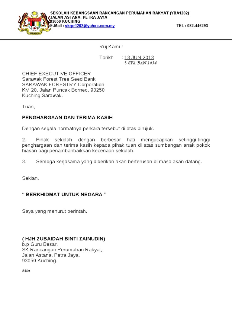 Surat Penghargaan Dan Terima Kasih Atas Kerjasama Kimaku